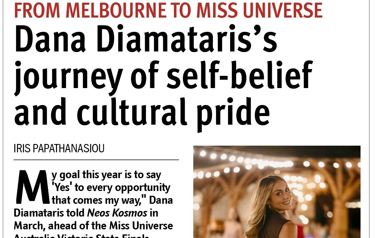Greek Australian finalist Dana Diamataris reflects on a life-changing journey of self-discovery, cultural pride, and purpose ahead of the Miss Universe Australia final in Perth…