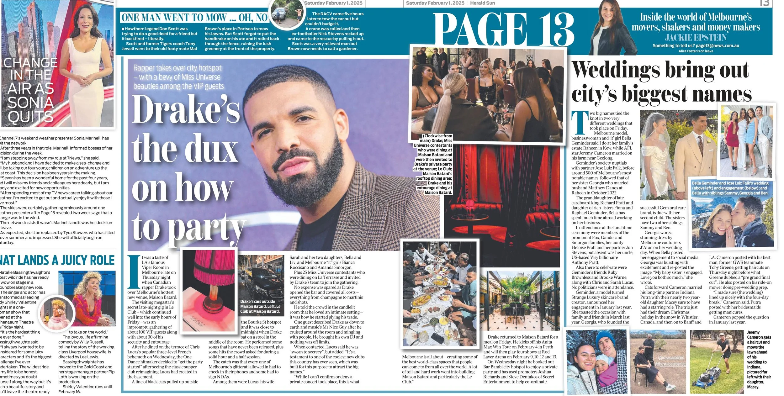 25 Miss Universe contestants who were dining on La Terrasse and invited by Drake's team to join the gathering. No expense was spared as Drake opened the bar and covered all costs…